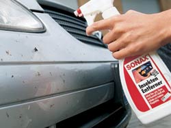 Insektenreste nach kurzer Einwirkzeit ganz bequem mit Wasser oder bei einer Fahrt durch die Waschanlage abgewaschen werden.