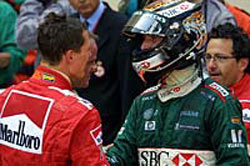 Schumacher (Ferrari) und Irvine (Jaguar)
