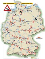 ARCHIVStaus auf den Heimreise-Spuren / Mit Übersichtskarte der Autobahnbaustellen und Staugebiete