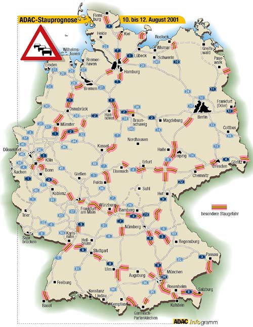 ADAC-Verkehrsprognose für das Wochenende 10.-12.08.2001