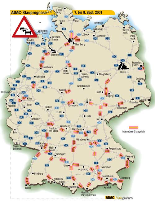 süddeutschen Autobahnen mit Engpässen zu rechnen. Für Staus auf den übrigen Fernstrecken werden heimkehrende