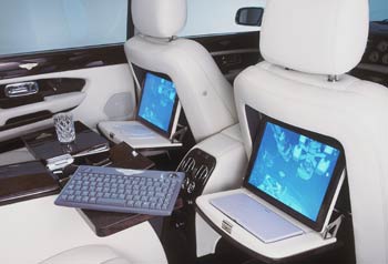 Zu dieser gehören ein TV-Tuner und ein DVD-Player, die ihre Signale an zwei in die Rückseite der Vordersitze