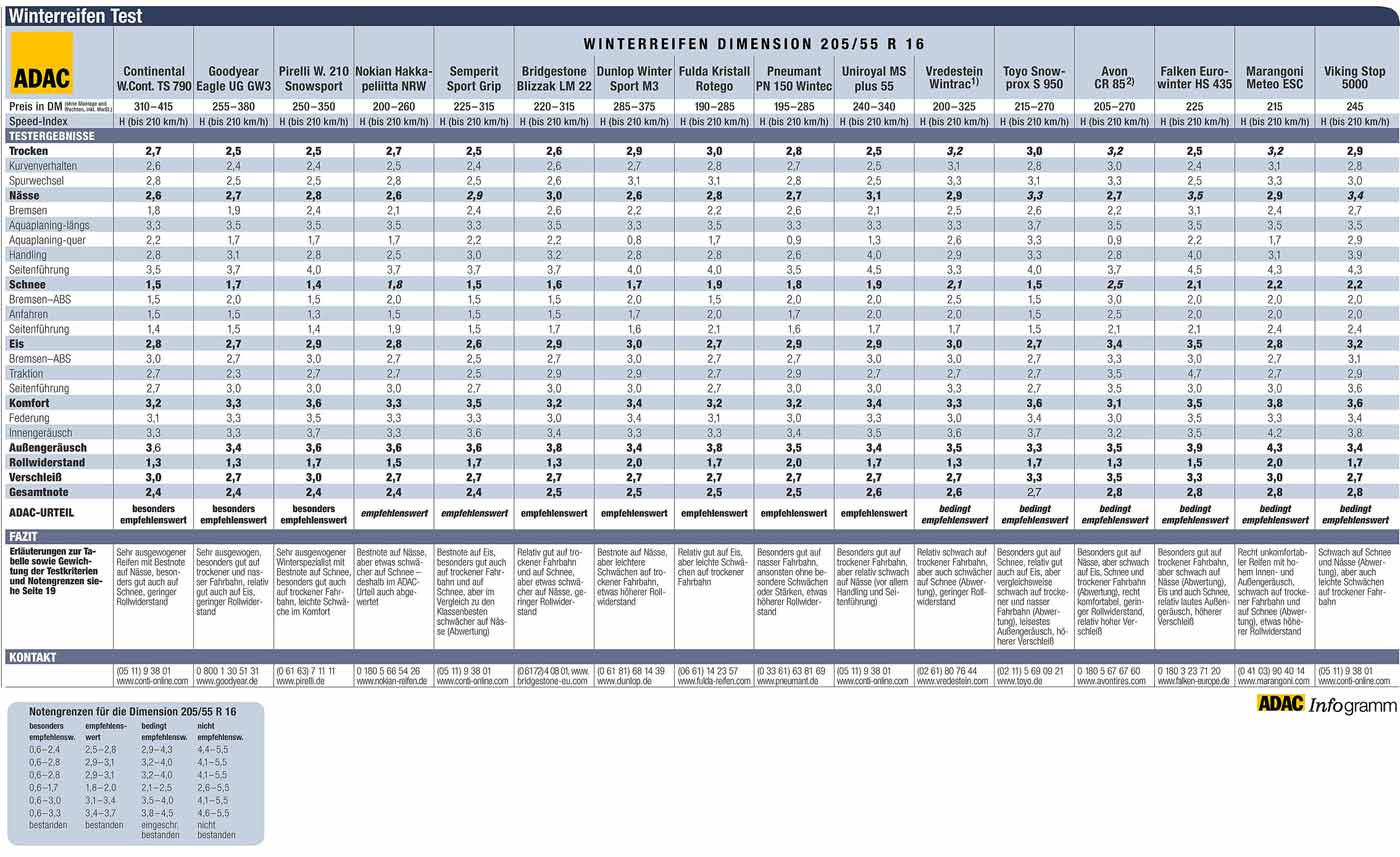 Passat etc.) liegen der Continental Winter Contact TS 790, der Goodyear Eagle UG GW3 und der Pirelli Winter 210