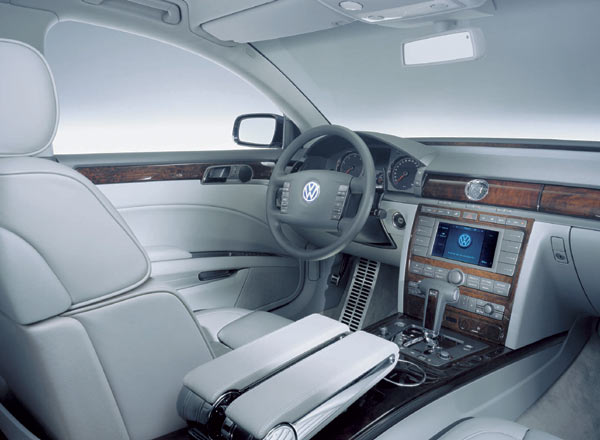 So ist das neue serienmäßige Infotainmentcenter mit einem sieben Zoll großen 16:9-Farbdisplay in der Mittelkonsole völlig eindeutig in seinen Funktionen. Sie umfassen - je nach Ausstattung - Audioanlage "in Konzertqualität" inklusive Sechsfach-CD-Wechsler, Navigationssystem, TV, Bordrechner, Telefon und Klimatisierung. Stolz zeigt man sich auch auf das Interieur-Design, für das die Marketing-Mannen den schönen Begriff "Manufaktur-Ästhetik" ersonnen haben. Hartmut Warkuß, VW-Chefdesigner: "Wir haben durch die Materialauswahl und -bearbeitung, die Haptik und das akzentuierte Design eine neue Balance zwischen progressivem und luxuriösem Flair erreicht."